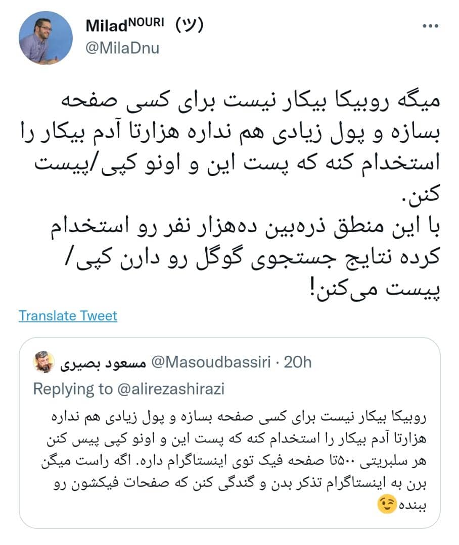 عجیب است که روبیکا روشن نکرده چهکسانی به چنین جعل و دزدی دست زدهاند و چرا چنین اتفاقی افتاده است. این در حالی است که پلتفرم روبیکا احراز هویت دارد و اگر افراد دست به این کار زدند چطور این اکانتها تیک آبی دریافت کرده است.