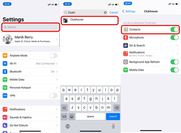 در پایان همچنین در iOS میتوانید مجوز دسترسی به مخاطبان این اپلیکیشن را لغو کنید. به این منظور به بخش آیفون بروید و به دنبال Clubhouse بگردید. روی آن ضربه زده و مجوز contacts را غیر فعال کنید. در همین صفحه امکان تغییر تنظیمات نوتیفیکیشن نیز وجود دارد.