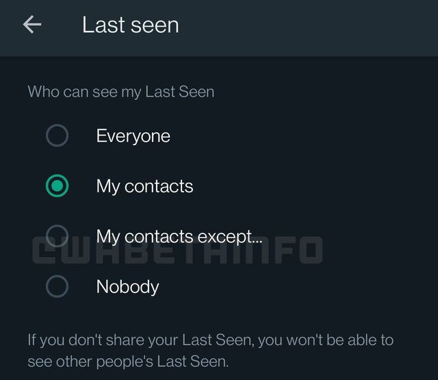 همان طور که گفته شد واتساپ به زودی به شما این امکان را فراهم میکند که وضعیت “آخرین بازدید” خود را از مخاطبان خاص مخفی کنید؛در نسخه فعلی، واتساپ فقط سه گزینه برای اشتراکگذاری «آخرین بازدید» امکانپذیر میکند، همه افرادی که شماره شما را دارند، فقط افرادی که در مخاطبین شما ذخیره شدهاند یا هیچکس. راهحل جدید، اشتراکگذاری آخرین بازدید را با اکثریت قریب به اتفاق دوستان و اعضای خانواده فراهم میکند، در حالی که این امکان را نیز به شما میدهد که افرادی را که نمیخواهید، از این لیست حذف کنید.