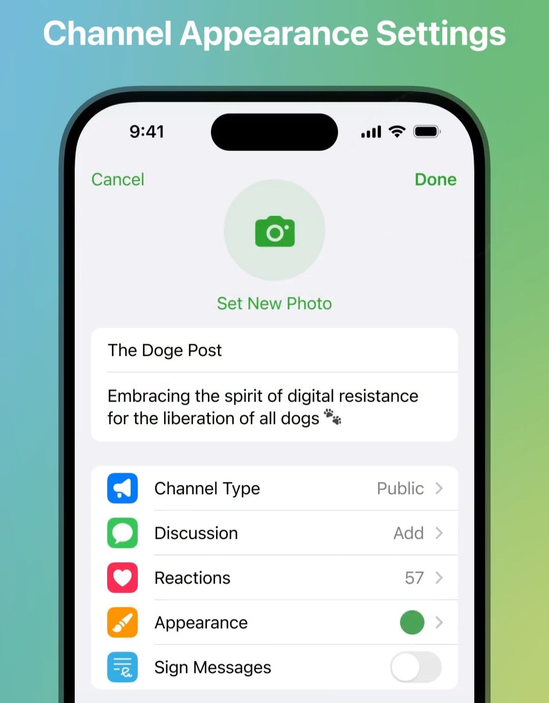 کانالها اکنون میتوانند به لطف افزایش مشترکین یا هدایا، ظاهر خود را با افزایش سطح شخصیسازی کنند. علاوه بر رنگ پیامهایشان، صاحبان کانال اکنون میتوانند رنگ و نشانوارهای را برای جلد نمایه خود انتخاب کنند، وضعیت ایموجی و تصویر زمینه را تنظیم کنند که برای همه کسانی که کانال را باز میکنند قابل مشاهده باشد.