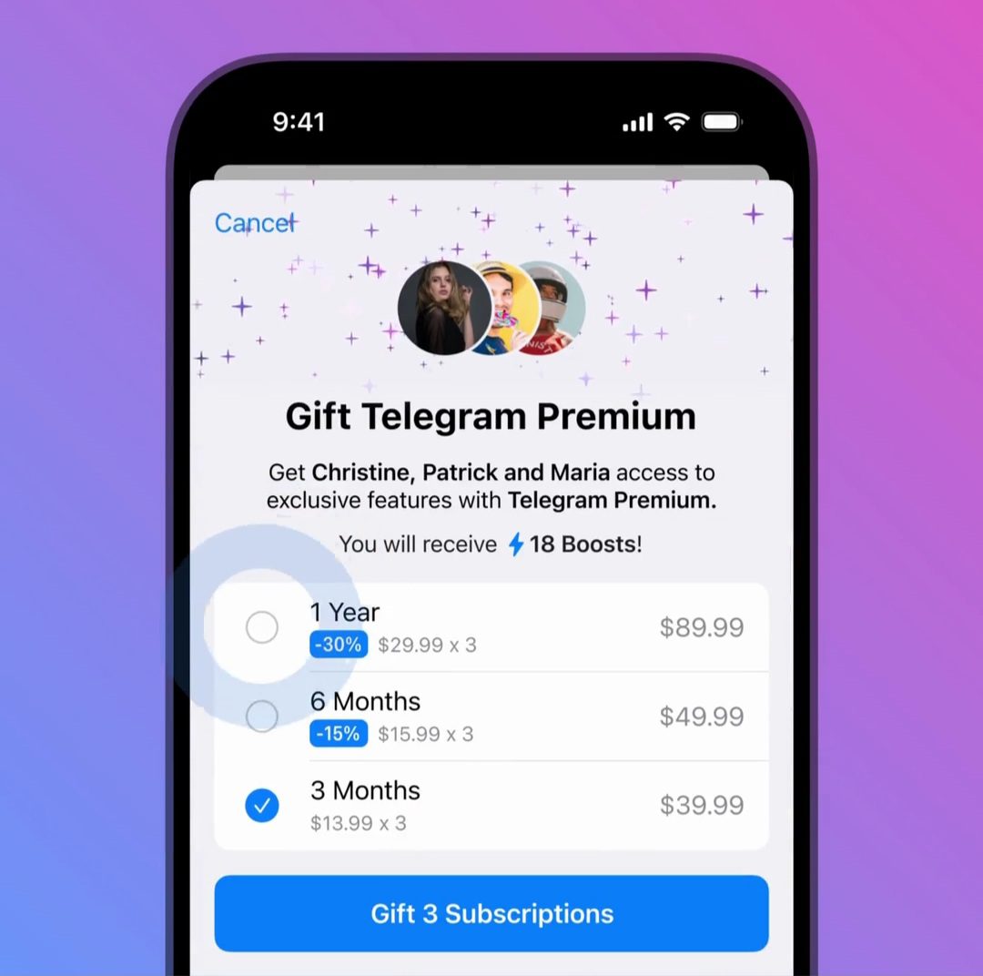 برای تبریک به دوستان خود، اکنون میتوانید تلگرام پریمیوم را به طور همزمان به چندین نفر هدیه دهید و آنها از هدایای کریسمس امسال در زمان بیسابقه برخوردار کنید.