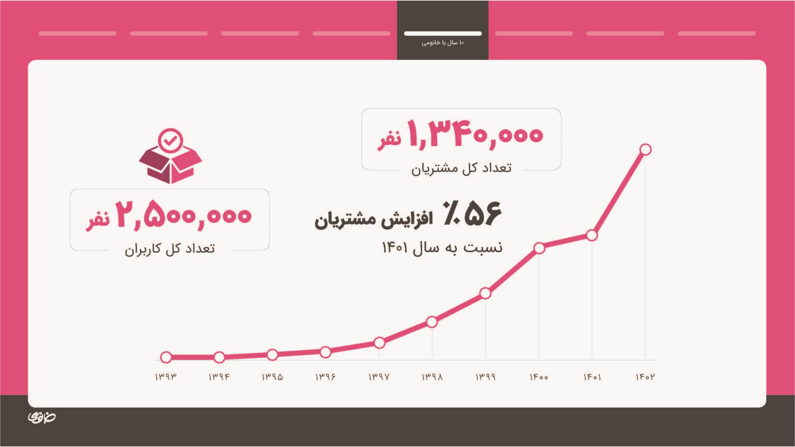 طبق گزارش خانومی کاربران این پلتفرم در سال ۱۴۰۲ دومیلیون و ۵۰۰ هزار نفر بوده که نسبت به سال ۱۴۰۱ پنجاه و شش درصد افزایش پیدا کرده است.