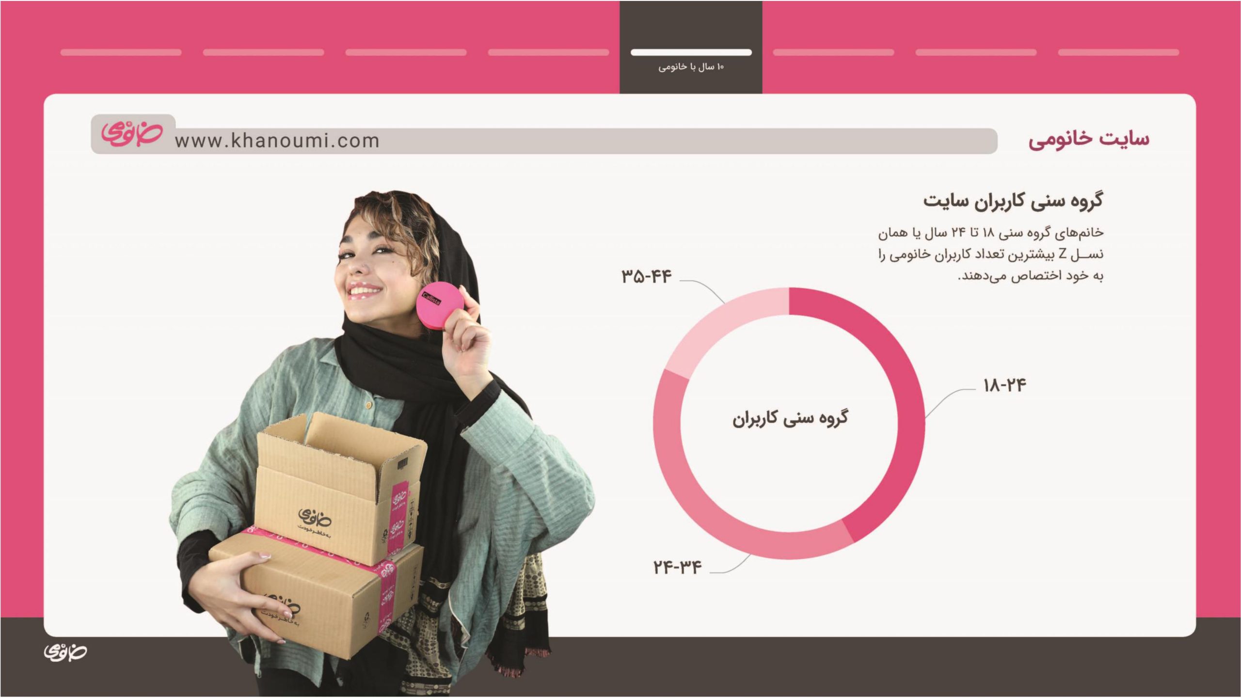 شاهمرادی در بخش دیگری از این گزارش آماری از کاربران ۱۸ تا ۲۴ سال یا نسل Z را اشاره کرد که بیشترین تعداد کاربران خانومی هستند و ۹۲درصد دنبالکنندگان خانومی در اینستاگرام خانمها هستند.خانومی در سال ۱۴۰۲ مبلغ ۳۰۰ میلیارد تومان تخفیف به کاربران خود داده است و به صورت میانگین هر کاربر سالانه از ۶۰۰ هزار تومان تخفیف استفاده کرده است.