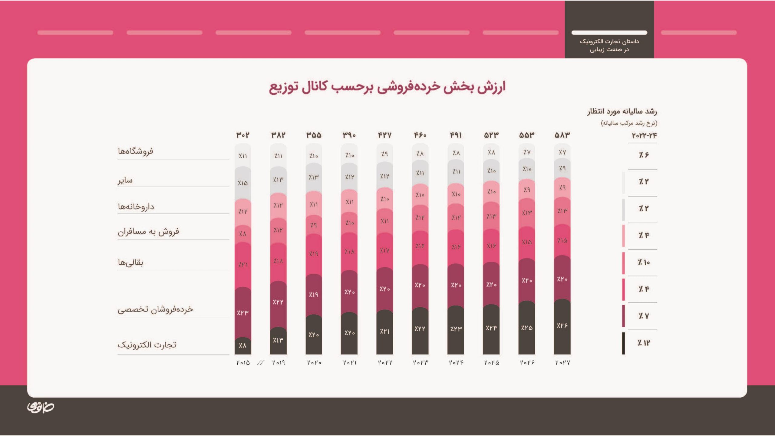 شاهمردادی در ادامه افزود سهم فروش کانال آنلاین بازار زیبایی در ایران ۴ درصد است و استان کردستان و بوشهر به دلیل مسئله قاچاق کمترین سهم فروش آنلاین خانومی در ایران را به خود اختصاص دادهاند.
